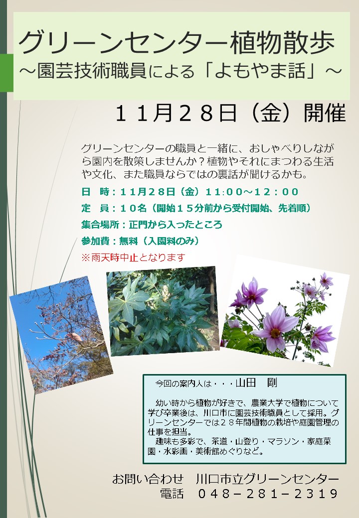 2025.11.20更新 11月28日開催「グリーンセンター植物散歩~園芸技術職員による「よもやま話」~」