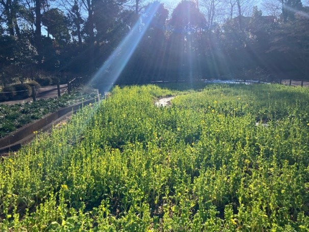 早く咲く菜の花を育てており、来月には見頃を迎えそうです。