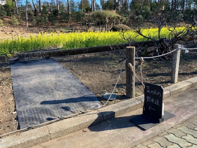 菜の花を横に小道を歩けるようになっております。