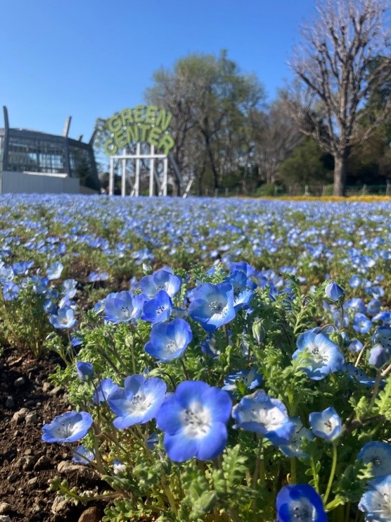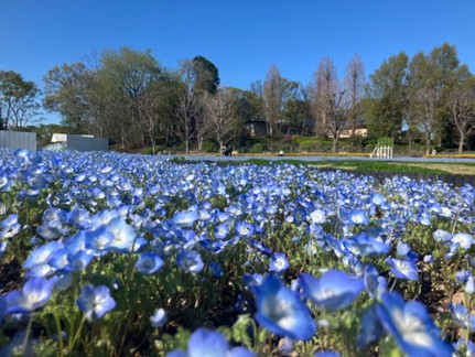 みんなの原っぱにある、約1,200㎡の花畑で育てているネモフィラが見頃になりました。